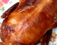"Утка. Жаренная в закрытой печи, как по внешнему виду, так и по вкусу, мало чем отличается от утки, жаренной в подвесной печи, но у нее все же есть несколько заметных отличий. Во-первых, технология приготовления. Особенность жарения в закрытой печи заключается в том, что здесь нет интенсивного огня. Вся дело в медленном огне, температура которого постепенно падает. Технология приготовления такой утки в какой-то степени сложнее. У жаренной в закрытой печи утки не только хрустящая кожица и нежное мясо; она очень аппетитная, у нее красивый, яркий цвет, а тушка пухленькая, словно налитая.