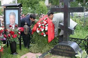 Сотрудники китайского посольства возлагают цветы к могилу С. Федорова