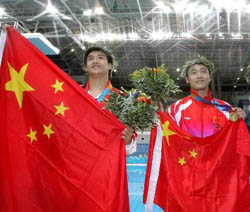 Китайский спортсмен Ху Цзя накануне в соревнованиях по прыжкам в воду с 10-метровой вышки среди мужчин занял первое место. Другой китаец Тянь Лян занял третье место.