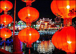 Он приходится на 15-й день первого месяца по лунному календарю, его еще называют ?Праздником фонарей?. Он совпадает с первым полнолунием в новом году. В этот день едят ?юаньсяо? и любуются праздничными фонарями. ?Юаньсяо? готовят из клейкого риса со сладкой начинкой. Они имеют форму шарика и символизируют счастье дружной семьи. Обычай любования фонарями, появившийся в I веке, и поныне живет во многих районах страны.