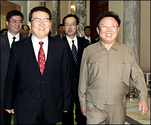 В 2003 году под руководством намеченного руководителями обеих стран курса ?Наследовать традиции, смотреть в будущее, быть добрыми соседями и укреплять сотрудничество? продолжала стабильно развиваться дружба между Китаем и КНДР. В октябре китайская делегация во главе с Председателем ПК ВСНП У Банго посетила КНДР, это была первая официальная встреча коллектива руководителей нового поколения ЦК Китая с руководителями КНДР. В отношении ядерного вопроса Кореи Китай продемонстрировал важную конструктивную роль, способствовал проведению в Пекине трехсторонних переговоров и шестисторонних переговоров. Новое развитие получили всестороннее сотрудничество и партнерство между Китаем и Республикой Корея. В июле президент РК Но Му Хен побывал в Китае с государственным визитом. В сентябре Председатель ПК ВСНП У Банго нанес официальный дружественный визит в Республику Корея. В октябре в течение года Председатель Ху Цзиньтао и премьер Вэнь Цзябао по отдельности во второй раз встретились в Бангкоке (Таиланд) и на индонезийском острове Бали с президентом РК Но Му Хеном.