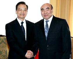 По словам Вэнь Цзябао, китайская сторона уделяет большое внимание развитию отношений с Кыргызстаном, рассматривая его как доброго соседа, надежного друга и прекрасного партнера. Обе страны уже успешно урегулировали проблемы границы, связывающей узами дружбы народы двух государств. Кроме того, стороны подписали Договор о добрососедстве, дружбе и сотрудничестве, на основе которого значительно укреплено политическое взаимодоверие и достигнуты большие успехи в сотрудничестве в различных областях. Это прочный фундамент для развития двусторонних отношений и их ценное достояние. Китайская сторона высоко оценивает поддержку, оказанную кыргызской стороной в тайваньском вопросе и борьбе с "Восточным Туркестаном". Китай намерен и впредь поддерживать усилия Кыргызстана по защите государственной независимости и развитию национальной экономики и продолжать совместные с кыргызской стороной усилия по развитию обоюдных долгосрочных отношений добрососедства, дружбы и сотрудничества.