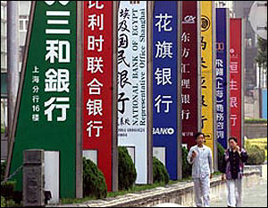Расширилась сфера банковских операций банков иностранного капитала в Китае. Комитет по надзору и управлению банковским сектором Китая с ноября 2003 г. предпринял в этом направлении ряд следующих мер: банкам иностранного капитала, отвечающим установленным законам требованиям, было разрешено предоставлять китайским предприятиям различные услуги в юанях в сферах, уже открытых для операций в жэньминьби (раньше они могли оказывать такие услуги в городах открытых для операций в жэньминьби только предприятиям иностранного капитала, иностранцам и лицам, проживающим в Сянгане, Аомэне и на Тайване); приветствовало участие соответствующих требованиям зарубежных стратегических инвесторов на добровольных началах и коммерческих принципах в реорганизации и реструктуризации финансовых учреждений банковского сектора Китая.