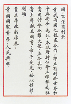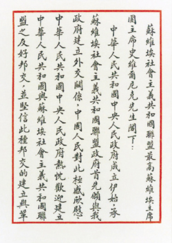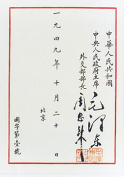 На снимке: верительные грамоты первого посла КНР в СССР Ван Цзясяна, подписанные председателем Мао Цзэдуном и премьером Чжоу Эньлаем.
