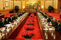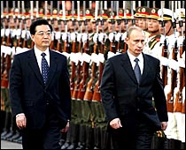 Горячо поприветствовав от имени правительства и народа Китая прибытие В. Путина, Ху Цзиньтао сказал, что нынешний его визит пойдет на пользу активизации дружественного сотрудничества между КНР и РФ и дальнейшему развитию китайско-российского партнерства стратегического взаимодействия.