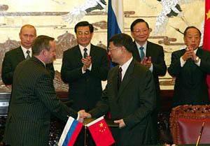 На снимке: руководители Банка Китая и Сбербанка РФ подписывают 14 октября соглашение о сотрудничестве.