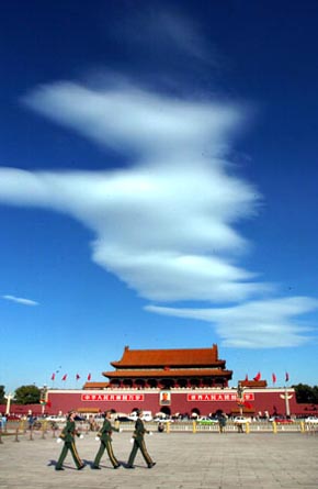 Сотрудники вооруженной милиции дежурят на площади Тяньаньмэнь.