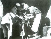 Канадский врач Н. Бетьюн оперирует раненого солдата 8-й армии