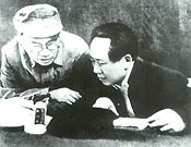 Председатель ЦК КПК Мао Цзэдун и командующий 18-й сводной армией Чжу Дэ изучают план контрнаступления
