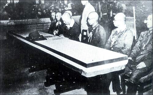 9 сентября 1945 года в Нанкине состоялась церемония подписания Акта о капитуляции Японии в районе китайского театра военных действий. Свою личную печать под Актом ставит представитель Японии и главнокомандующий японскими войсками в Китае Окамура Ясудзи.