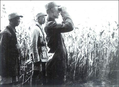 Командующий Центральнохэбэйским округом Люй Чжэнцао во время сражения с японским карательным отрядом.