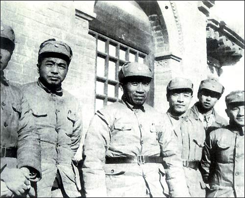 Военачальники 8-й армии находились на передовой линии фронта даже в самые тяжелые дни. На снимке: Чжу Дэ, Дэн Сяопин, Пэн Дэхуай и др. в штабе 8-й армии в уезде Хундун провинции Шаньси.