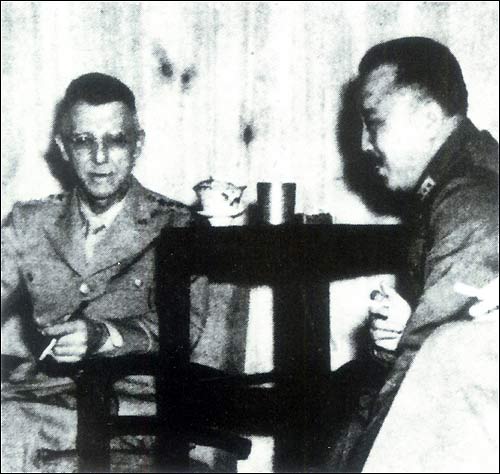 Вэй Лихуан, командующий китайским экспедиционным корпусом в Бирме обсуждает план боевых действий с генералом Стилвелом в Баошане, провинция Юньнань.