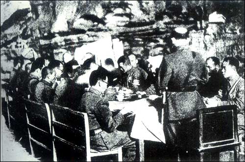 Командиры китайской армии на военном совете в пещере в ходе решающей битвы в южном Гуанси.