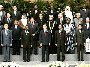 Выступая в Джакарте на саммите Азия-Африка, Ху Цзиньтао заявил, что сейчас перед странами этих континентов открыты исторические шансы на ускоренное развитие в связи с глобализацией экономики, научно-техническим прогрессом, перемещением производственных мощностей и растущей зависимостью стран друг от друга.