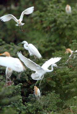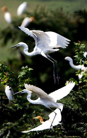 В последние дни расположенная на берегу оз. Поянху деревня Чжанъян волости Губу уезда Юйгань провинции Цзянси встречает особых гостей – белых цапель. С 1998 года местные крестьяне стали уделять большое внимание охране окружающей среды. С каждым годом увеличивается площадь лесов что привлекает стаи белых цапель. Теперь белые цапли – неотъемлемый элемент чжанъянского пейзажа