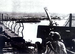 Уничтожающий огонь советской артиллерии по позициям японской армии