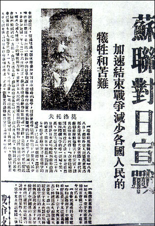 Китайские газеты напечатали сообщения об объявлении СССР войны Японии.