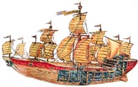 В состав армады во время всех экспедиций Чжэн Хэ входили более 200 кораблей, в том числе от 40 до 60 с лишним типа ?Баочуань? (букв. ?драгоценный корабль?). У Христофора Колумба было 3 – 17 кораблей, у Васко да Гамы – 4, а у Фернана Магеллана – 5.