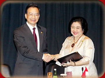 Премьер Госсовета КНР Вэнь Цзябао принял участие в работе проходившего с 7 по 8 октября 2003 года на индонезийском острове Бали встрече руководителей стран-членов АСЕАН. На данном форуме правительство КНР заявило о присоединении к Договору о дружбе и сотрудничестве в Юго-Восточной Азии и подписало Совместную декларацию КНР и АСЕАН, ознаменовав создание отношений стратегического партнерства, ориентированных на мир и процветание. Таким образом, Китай впервые подписал документ о создании отношений стратегического партнерства с региональной международной организацией.