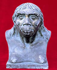 Что представлял собой синантроп? На основе реконструкции обнаруженных окаменелостей доказано, что синантроп имел маленький рост — примерно 1,52м., конечности и туловище его были в общем сходны с конечностями и туловищем человека. Положение тела при ходьбе было вертикальным, что свидетельствует о довольно высокой ступени его развития, однако мозг по объему составлял в среднем всего лишь две трети мозга современного человека. Темя было плоское, лоб же, покатый, уходящий назад, имел массивные надбровные дуги. Рот выступал вперед, подбородок был чуть заметным.