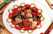 3. Обжарить в масле мясо с добавлением соуса, добавить масло душистого перца. Блюдо готово.