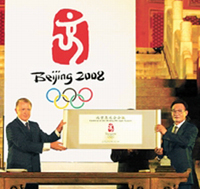 Официальная презентация эмблемы 29-х Олимпийских игр "Пекин-2008" состоялась вечером в воскресенье на Алтаре моления об урожае ("Циняньдянь") пекинского Храма Неба.