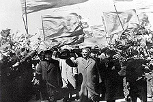 Чжу Дэ сопровождает Председателя Президиума Верховного Совета СССР К.Е.Ворошилова в поездке в г. Аньшань.