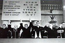 В президиуме торжественного собрания общественности Москвы, посвященого 11-й годовщине Договора о дружбе и взаимной помощи между КНР и СССР.